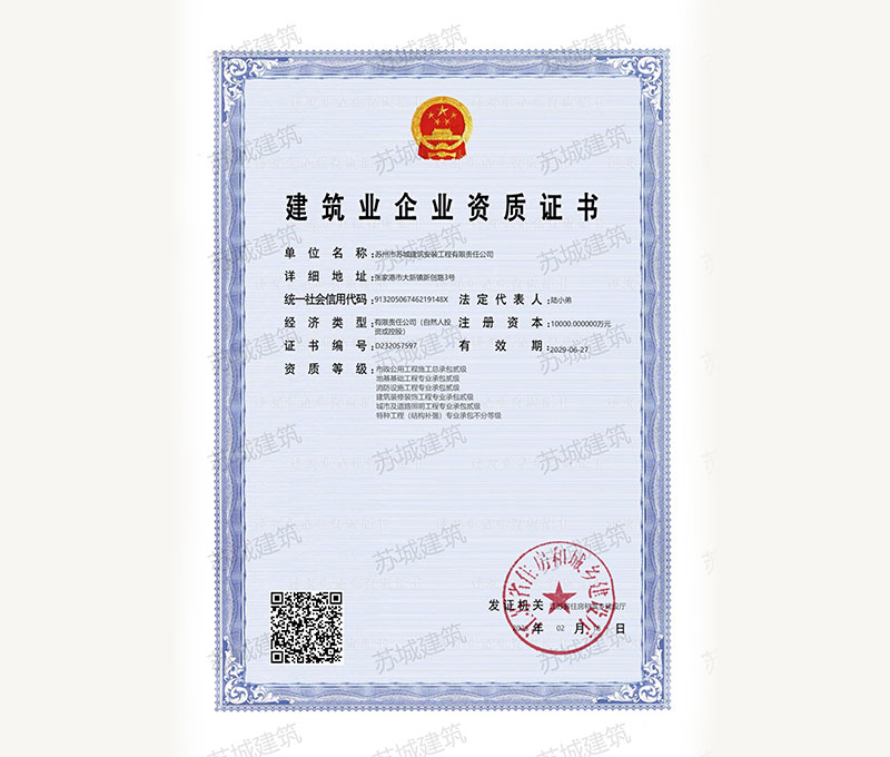 蘇州市蘇城建筑安裝工程有限責(zé)任公司,擁有主項(xiàng)建筑工程施工總承包一級資質(zhì),增項(xiàng)市政公用工程施工總承包二級資質(zhì)和建筑裝修